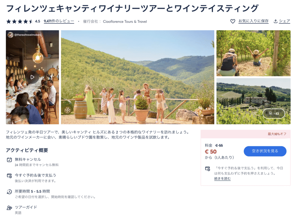 例えばこちらは2025年9月時点の情報ですが、GetYourGuideで一人€50のツアーが見つかるので、興味がある方はぜひチェックしてみてくださいね!